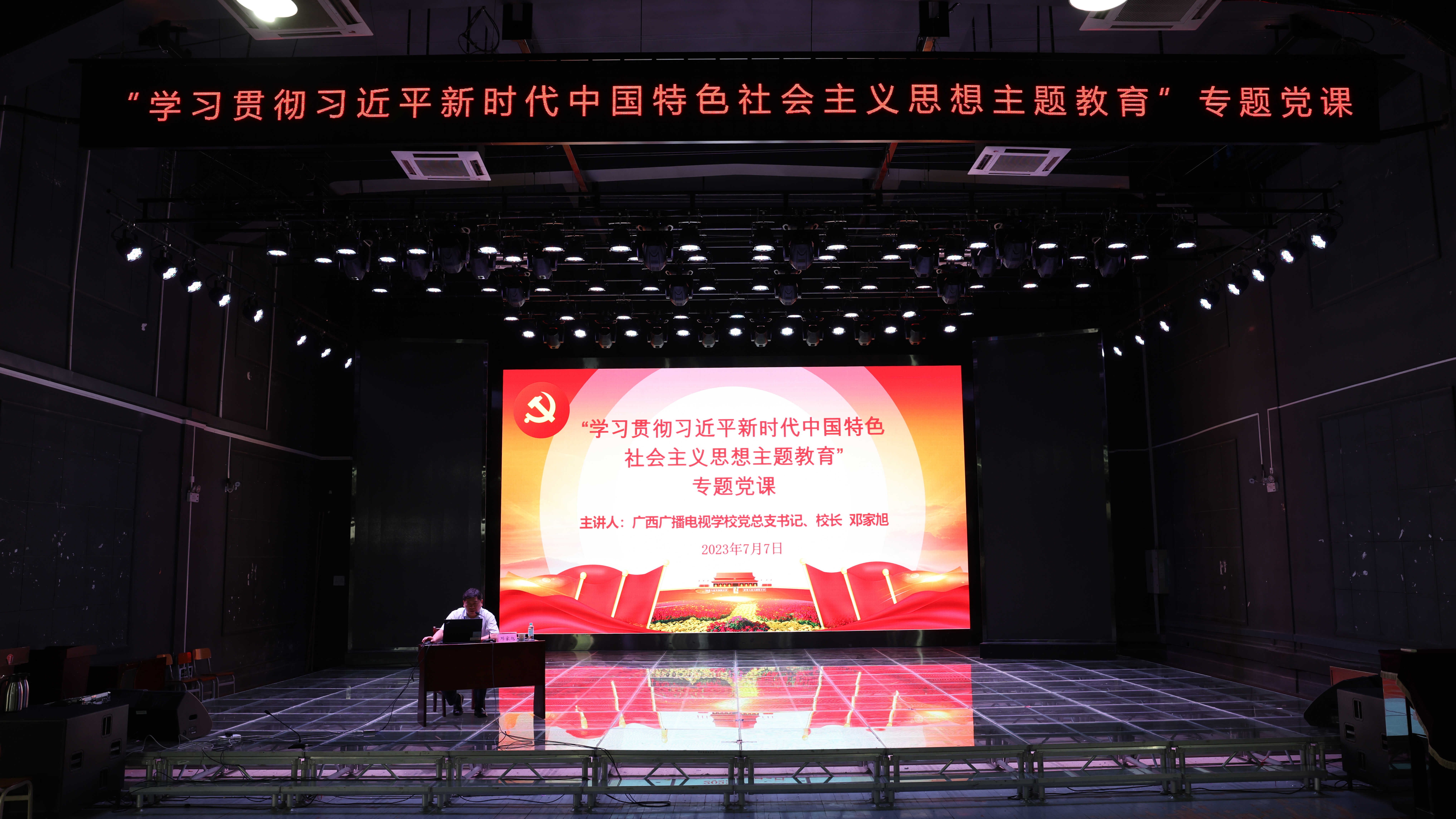 7月7日,广西广播电视学校党总支书记、校长邓家旭为学校全体党员、入党积极分子讲授题为《学思践悟习近平新时代中国特色社会主义思想 凝心聚力推动广西广播电视学校达标工作迈上新台阶》专题党课。