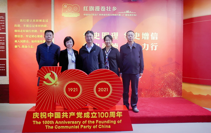 11月3日上午,《求是》杂志社发行联络部主任杨煌一行3人来到广西新闻出版广播影视博物馆,参观了广西新闻出版广播影视博物馆各展区及“红旗漫卷壮乡——中国共产党在广西革命历程文物图片展(广播电视专场)”。自治区党委宣传部副部长,艳母漫画 党组书记、局长张虹一同参观。