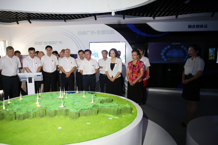 新建成的“壮美广西·智慧广电”多媒体交互体验馆按照服务广西、振兴八桂、服务东盟的设计理念,以当前正在实施的“壮美广西·智慧广电”工程建设为重点展示内容,重点展示智慧广电的融合媒体、中国—东盟网络视听产业基地、民用政用商用服务项目、5G与未来等内容,通过现代科技手段,立体、形象地展现广播电视从“看电视”到“用电视”的转变,将更好更直观地向社会各界和人民群众宣传推介智慧广电的功能和应用服务。
