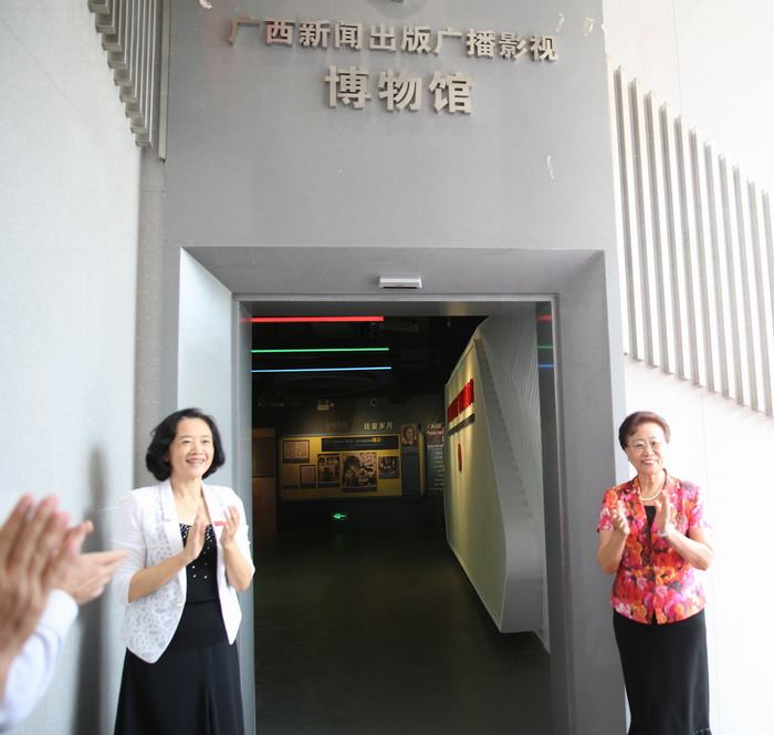 张虹局长与自治区政府参事于瑮共同为广西新闻出版广播影视博物馆揭牌。