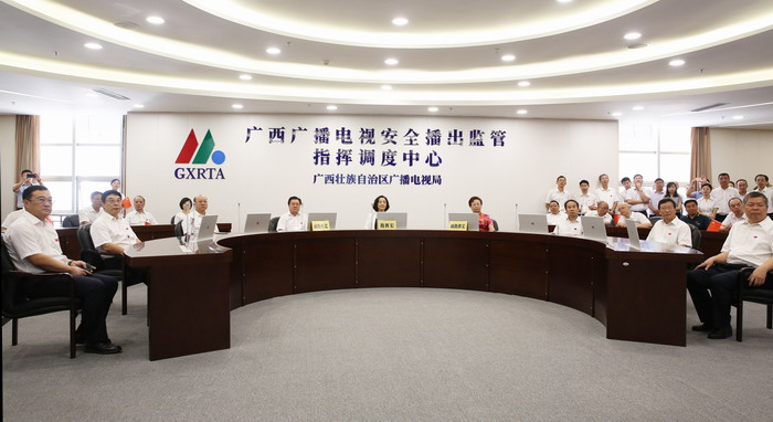 出席仪式的领导嘉宾共同巡视广西广播电视安全播出监管指挥调度中心。