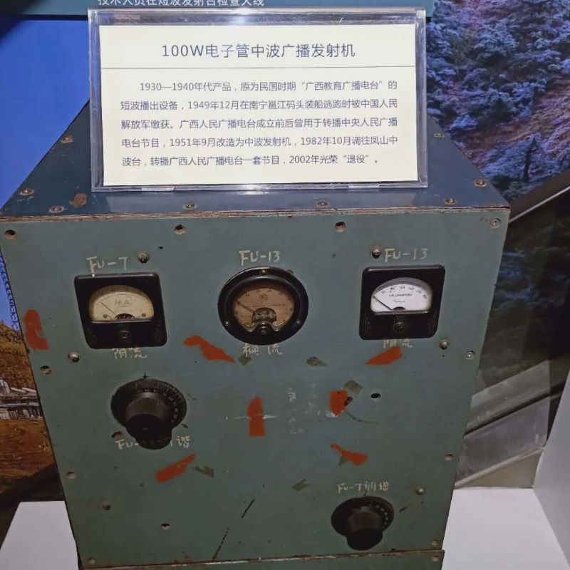 在广西广播电视事业发展的初期,第一台发射机就是从国民党军队缴获,如今洗尽芳华,锈色可鉴,和其他珍贵藏品一道静静地伫立在展台上,等待着一场和现代观众穿越时空的邂逅。