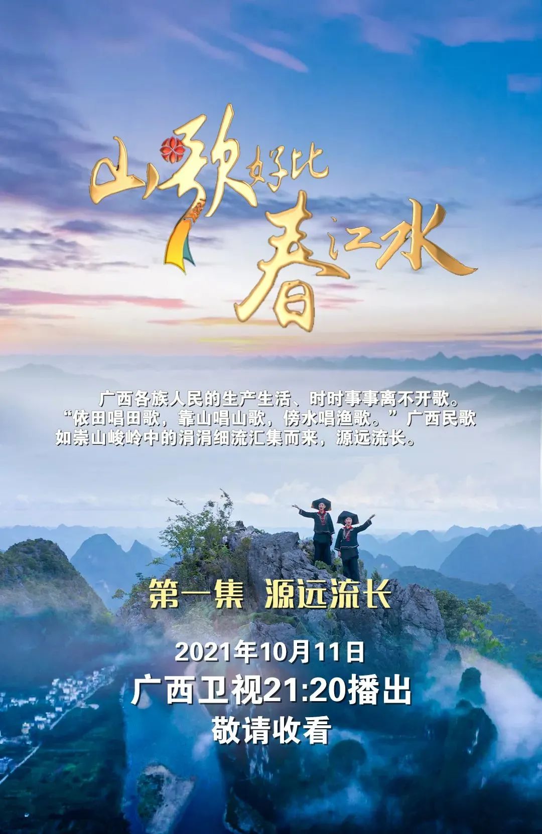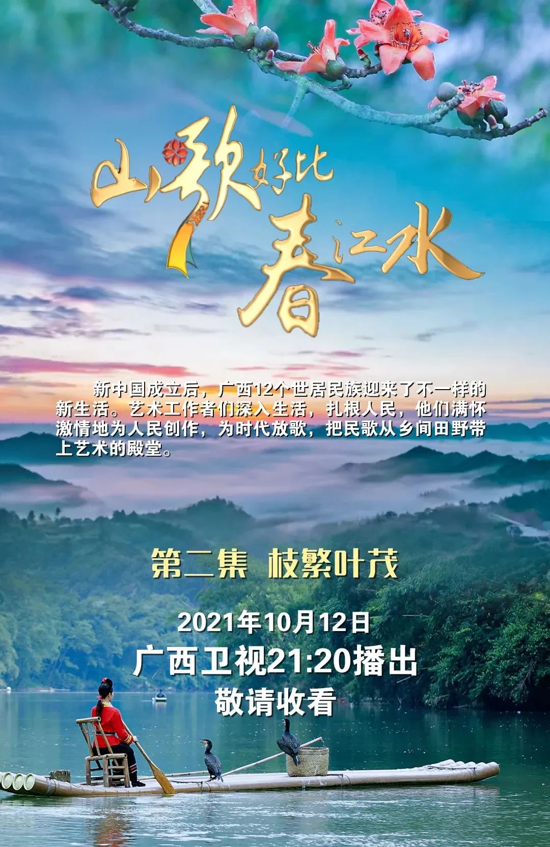 广西不同民族聚居、多元文化交织,不同的民歌在这里拥有了广阔的生长空间。以民歌为纽带,《山歌好比春江水》也将一份文化认同感根植到广西各族人民心中。
