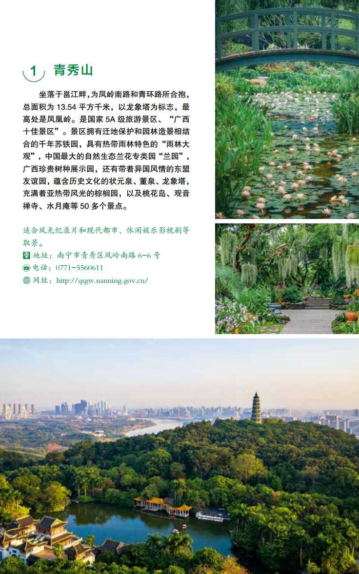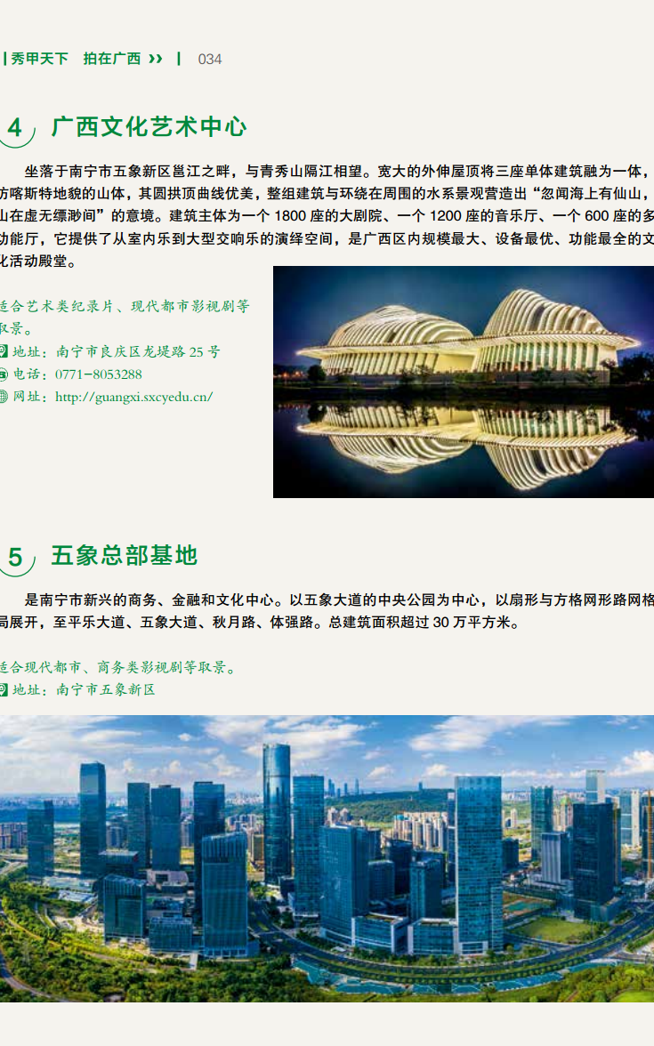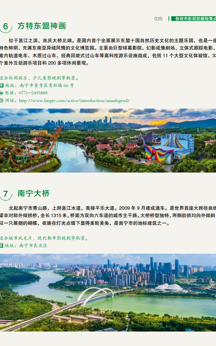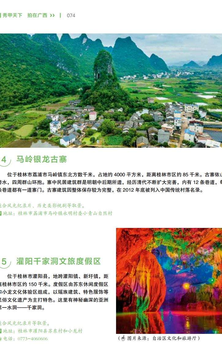 全面性:涵盖了广西各地市的自然风光、人文历史、城市地标和文化场所等各类取景点,是一本全方位的影视拍摄指南。