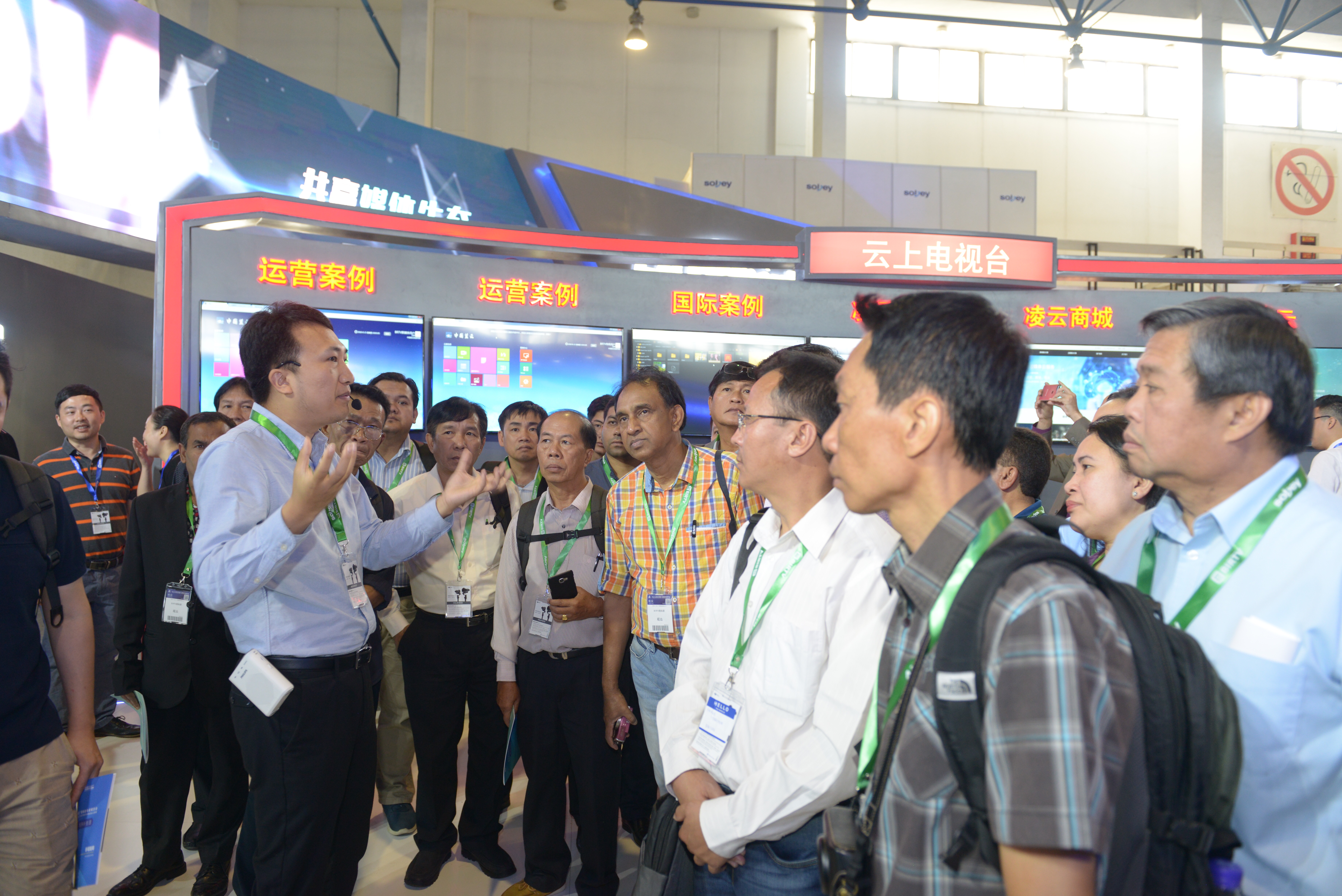 参加2018年度亚洲电视制作技术交流活动的代表参观2018年北京国际广播电影电视展览会 供图 广西广播电视局