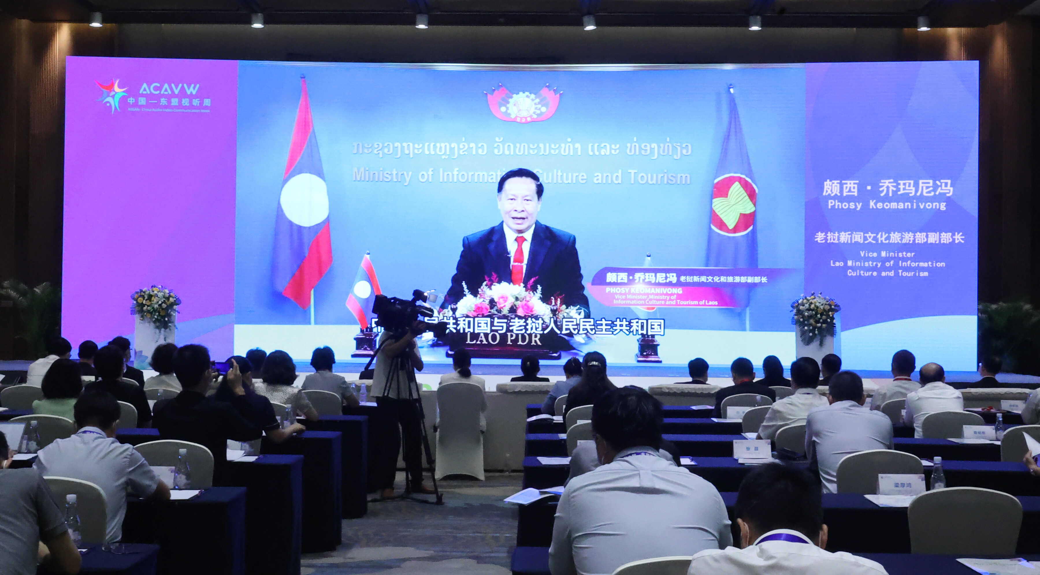 老挝新闻文化旅游部副部长颇西·乔玛尼冯作视频致辞