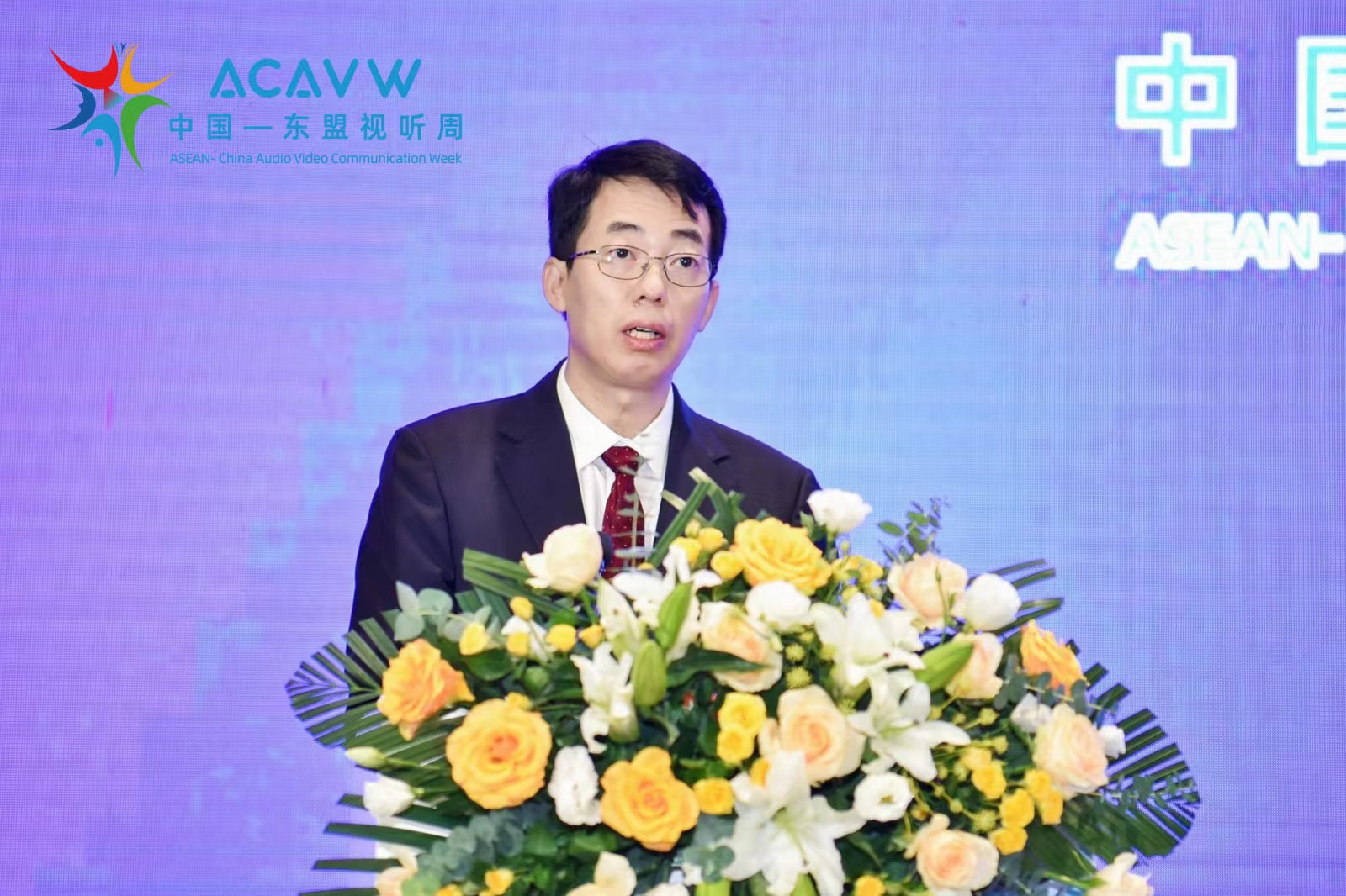 中国—东盟视听周组委会秘书长,广西壮族自治区党委宣传部副部长、广播电视局局长满昌学作主旨发言
