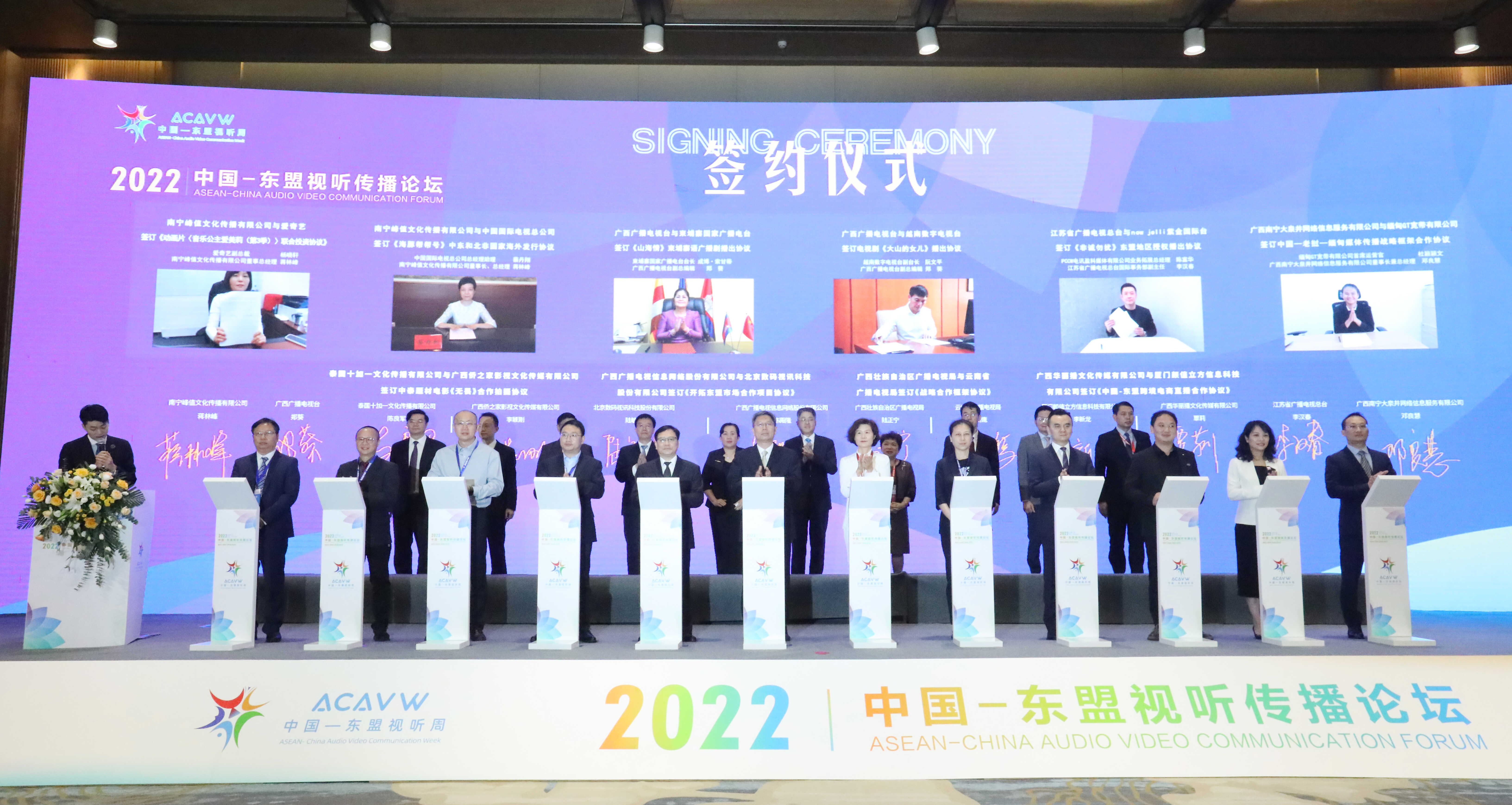 论坛期间,共有10个项目通过线上和线下的形式进行签约。签约项目较往届相比覆盖范围更加广泛,既有广西与云南两省区间的广电视听领域战略合作框架协议,又涵盖了开拓东盟市场合作项目、中国—东盟跨境电商直播合作、影视作品合作拍摄,电视剧、广播剧、动画片、综艺节目在东盟地区授权播出和海外发行等多个方面。这些项目的签约及落地,将为进一步推动中国—东盟人文交流和民心相通注入强大动力。