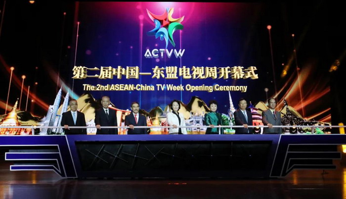 出席开幕式的领导嘉宾共同启动第二届中国—东盟电视周