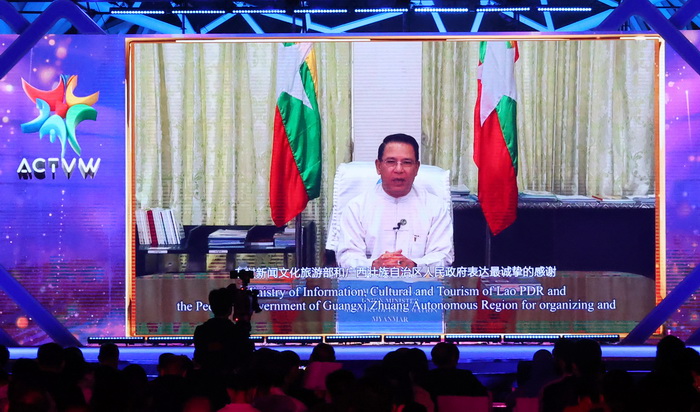缅甸宣传部部长吴貌貌翁作视频致辞