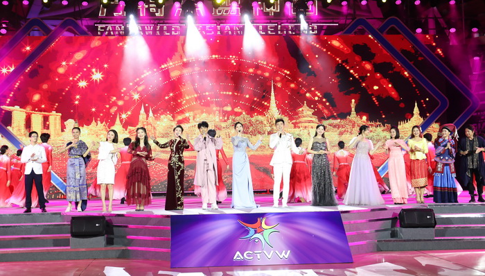 开幕式晚会上同时举办了中国—东盟青年主播创造营结营盛典,青年主播们回顾了研学的精彩点滴和难忘收获,并一同唱响中国和东盟各国的影视金曲,将晚会气氛推向高潮。