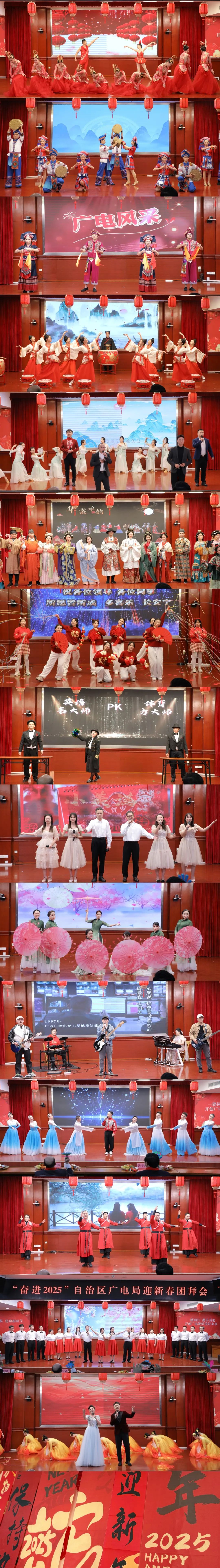 活动设置了壮美广西·春回大地、广电风采·春潮涌动、展望未来·致敬2025三个篇章,由艳母漫画 系统干部职工结合工作和生活实际,自编自导自演了一系列内涵丰富、形式多样的文艺节目,展现了广西广电人创新实干、奋发进取的精神风貌。活动中,还设置了为本命年干部职工代表赠送纪念品、为干部职工运动会比赛优胜队伍颁发纪念奖杯等环节,现场气氛热烈。